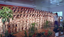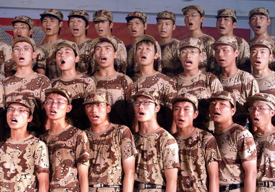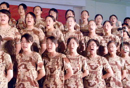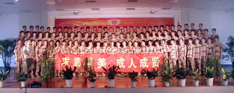 9月16日下午,南京94840部队的食堂里一片沸腾,一阵阵嘹亮的歌声和一阵阵热烈的掌声此起彼伏,成贤学院2005级新生军训大合唱比赛在这里举行。