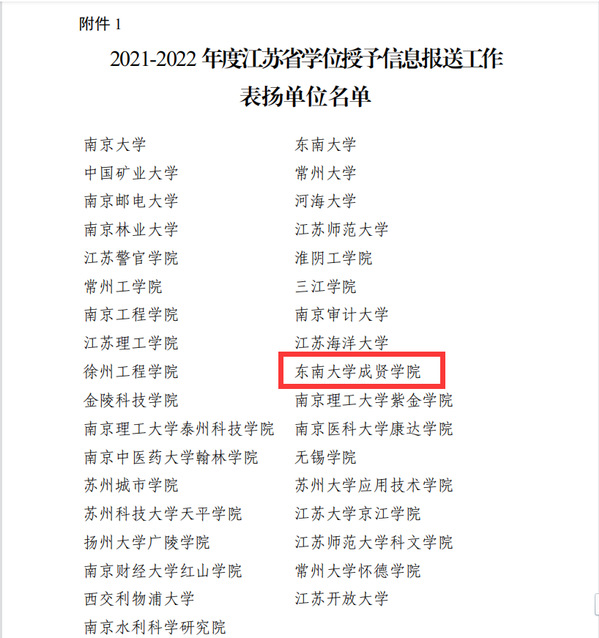 江苏省学位委员会办公室于近日发布了《省学位办关于2021-2022 年度江苏省学位授予信息报送工作情况的通报》(苏学位办函〔2023〕7号),我校获评2021-2022年度江苏省学位授予信息报送工作通报表扬单位,教务处陈雪琼获评2021-2022年度江苏省学位授予信息报送工作通报表扬个人。