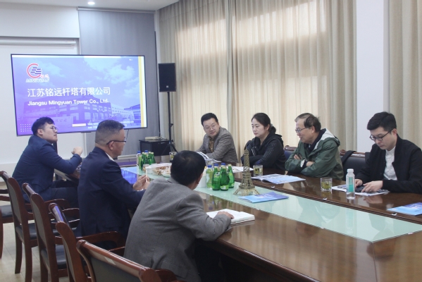 江苏铭远杆塔有限公司是无锡市专精特新小巨人企业、高新技术企业、无锡市知名商标企业、江苏省民营科技企业、无锡市重合同守信用企业,在国内外行业内均有一定知名度。在交流中,江苏铭远杆塔有限公司总经理鲁旭晨向土木与交通工程学院郭院长一行详细介绍了公司发展、产品特色、远景规划和现实需求。郭院长听取介绍后首先表达了对校友企业所取得成绩的认可,其次向企业介绍了学院今年毕业生的相关情况和学院目前的特色、优势,最后对企业在产业发展、技术创新和校企合作等方面进行了详细而务实的指导并对校友企业在智能制造、高质量制造和碳排放等方面进行了前瞻性的规划。