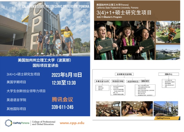 为进一步拓展我校学生国际化视野,充分调动学生参与国(境)外交流项目的积极性,5月10日中午,校发展合作处邀请美国加州州立理工大学(波莫纳)以腾讯会议形式举行国际大学生项目宣讲会。美国加州州立理工大学(波莫纳)全球教育交流学院主任薛亚萍博士及高级项目负责人王英川经理面向我校学生进行了赴美交流项目宣讲。来自各学院的 200多名学生在线参加了此次活动。