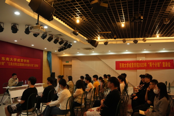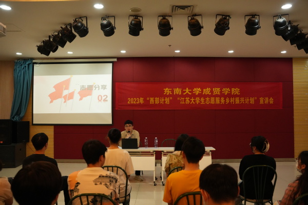 为更好引导学生树立正确的成才观、就业观,鼓励我校2023届毕业生正确择业、积极就业,推动“两个计划”工作的持续发展,5月18日晚,校团委在大学生活动中心307举办2023年“西部计划”“江苏大学生志愿服务乡村振兴计划”宣讲会。20届优秀毕业生、乡村振兴计划志愿者代表、六合雄州街道刘昊(16级国际经济与贸易专业)受邀分享经验,团委冯老师主持并宣讲,50余名应届毕业生聆听宣讲并参与了互动。
