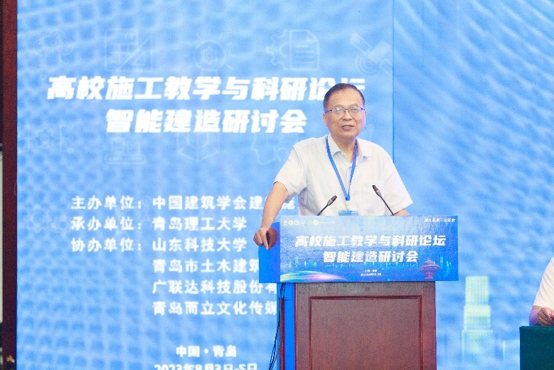 2023年8月3日至5日,高校施工教学与科研论坛第九届第二次年会在青岛成功召开。本次年会由中国建筑学会建筑施工分会主办,青岛理工大学承办,山东科技大学、青岛市土木建筑工程学会、广联达科技股份有限公司、青岛而立文化传媒有限公司共同协办,来自全国各地高校科研院所、建筑施工企业的150余名嘉宾、同行参加会议。我校土木与交通工程学院院长郭正兴教授应邀参加,并在开幕式上代表主任单位致辞。