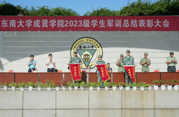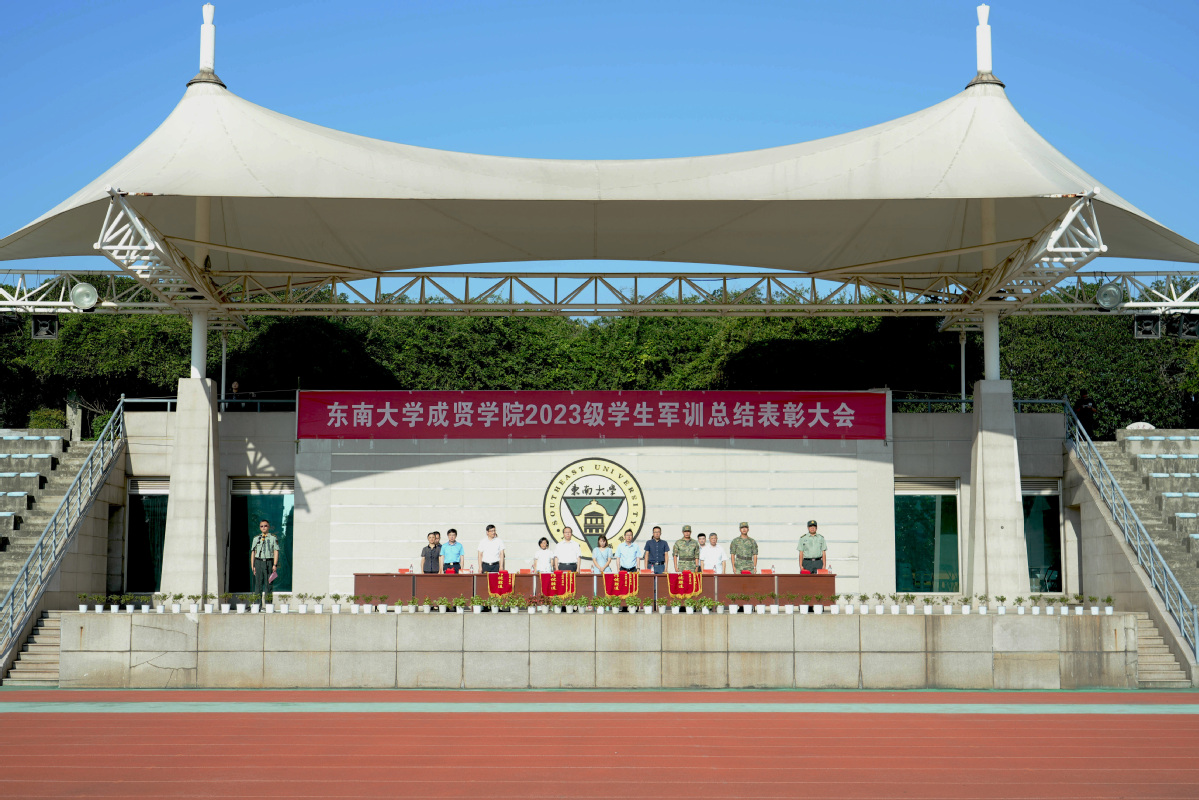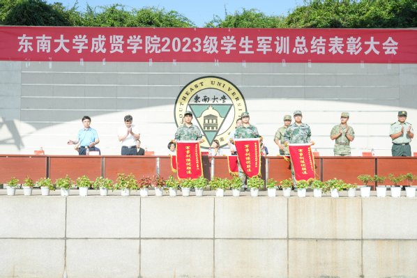 9月9日上午8:00,东南大学成贤学院2023级新生军训总结表彰大会在田径场隆重举行。学校党委书记张志胜,常务副院长黄学良,党委副书记、副院长、纪委书记王荣,党委学工部部长施杰,后勤管理处副处长丁秀山,2023级军训团团长隋军,军训团副团长张维出席大会。各连排承训教官、各学院党总支书记、综合办主任、新生辅导员、2023级全体新生参加了大会。大会由人武部部长潘明烽主持。