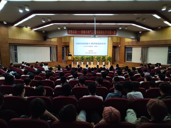9月14日,机械与电气工程学院在真知馆报告厅召开了“梦想起航”新生开学第一课暨入学教育活动。学院院长许映秋、党总支书记严红霞、分团委书记马逸凡、辅导员王业赞与缪烨明、学院2023级300多名新生参加本次活动。应邀出席本次活动的嘉宾是2010届机械专业校友南京云桔信息科技有限公司总经理封雨、2017届电气专业校友南京航空航天大学在读博士刘沛麟。大会由综合办主任李洪全主持。