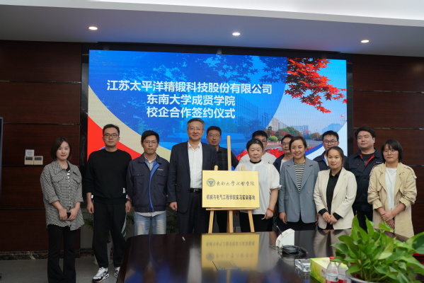 两家公司首先对我院领导和老师的到来表示热烈欢迎,他们希望能整合双方优势资源,共同为社会培养高素质应用型人才。随后机电学院院长许映秋对实习实训基地的创立表示热烈的祝贺,她介绍了东南大学成贤学院及我院的发展历史、办学特色、专业建设等情况,希望通过合作积极探索校企合作新模式,进一步深化产教融合、加强协同育人,与公司进行从学生实习实训到双方课程共建、项目合作、3+1校企联合培养等各个层面各种不同形式与内涵的合作,以此推动我院一流应用型教育生态体系的加速建设,助力我院为社会发展、为行业、为企业提供更多优质特色人才。最后,许院长与两家公司共同签订了战略合作协议并揭牌。仪式后,老师们与本届校企合作学生和往届学生进行了深入的交流沟通,了解他们的工作、生活等情况,勉励他们勤奋工作,不断进取。公司还邀请老师们一起参观企业展厅和产线,了解企业的生产流程、工艺技术以及生产环境,并交流了相关的技术要求和技术支撑,老师们还参观了精锻科技党员活动中心,学习企业党建工作理念、工作方法。