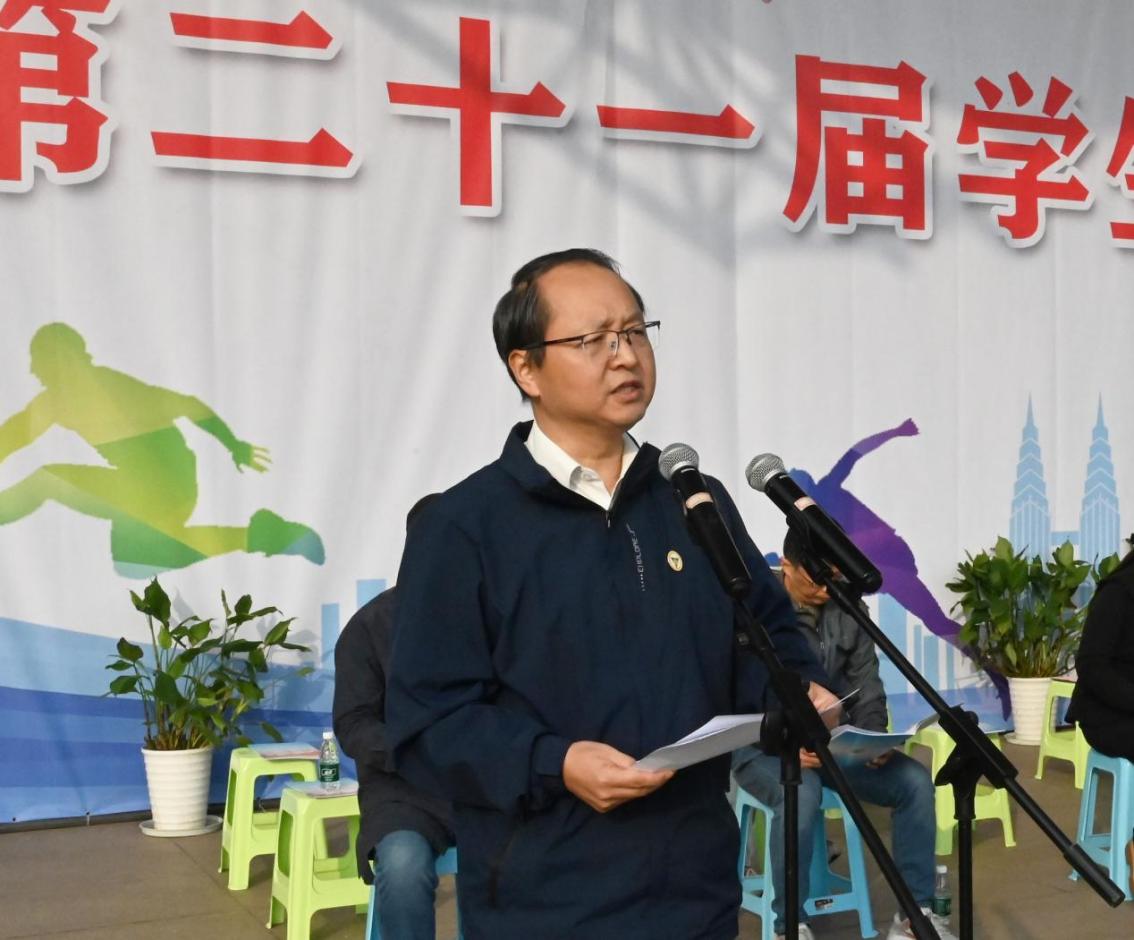 在庄严的升旗仪式后,党委书记张志胜致开幕词。他代表学院党政领导对本届运动会的召开表示热烈的祝贺,向参赛的全体运动员、裁判员和大会工作人员表示亲切的问候,并希望乘着本次运动会的东风,进一步倡导“阳光体育、健康成贤”的理念,让全院师生牢固树立终身锻炼的健康理念,充分感受体育的魅力,享受运动的乐趣,做全民健身践行者,助力体育强国建设,为实现中华民族伟大复兴中国梦贡献力量。