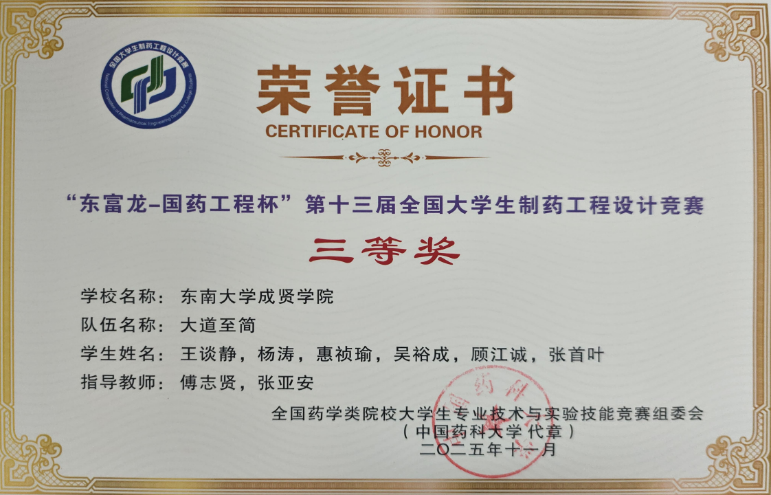 近日,“东富龙—国药工程杯”第十三届全国大学生制药工程设计竞赛落下帷幕。我校共有2支队伍从全国191所高校的756支队伍中脱颖而出,荣获全国三等奖。