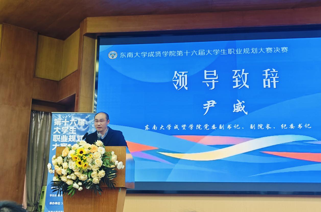 12月15日下午,由学生处、教务处、校团委主办,经济管理学院承办的东南大学成贤学院第十六届大学生职业规划大赛决赛在真知馆报告厅成功举办。学校党委副书记、副院长、纪委书记尹威出席活动,南京工业大学学生工作处副处长齐鹏、东南大学就业指导中心副主任丁菡,学生处处长施杰、团委副书记刘静、教务处处长助理吴龙龙担任评委,相关职能部门和二级学院负责人、辅导员和两百余名学生现场观摩了比赛