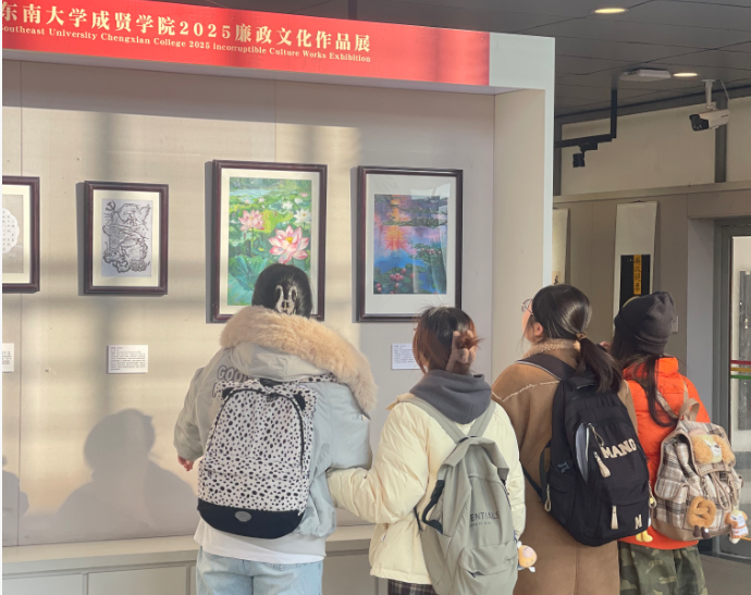 本次廉政文化作品展自2025年5月开始面向全体师生征集作品,共征集到各类作品1162件,其中书画类作品312件、摄影类作品347件、艺术设计类作品282件、网络新媒体类作品11件、表演艺术类作品7件、校园征文203篇。经过作品筛选、分类并由专业评委评审,最终244件作品脱颖而出,分别获得2025年东南大学成贤学院校园廉政文化作品征集活动一、二、三等奖,其中书画类作品获奖75件、摄影类作品获奖69件、艺术设计类作品获奖68件、网络新媒体类作品获奖3件、表演艺术类作品获奖1件、校园征文获奖28篇。同时展览中还设有党的二十届四中全会精神学习、贯彻中央八项规定精神学习专题展板。这些作品源于师生对身边廉洁文化的深刻思考与艺术表达,是校园廉洁教育与文化建设成果的生动呈现。它们于尺幅之间传递浩然正气,在笔墨之中浸润清廉之风,共同诠释着“以清为美、以廉为荣、以德立身、廉洁成贤”的价值追求。